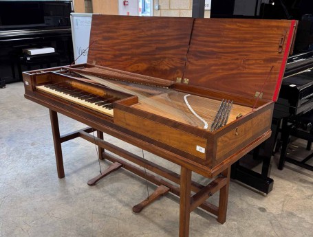This magnificent instrument by Jacob and Abraham Kirkman is an example of the fully-developed English harpsichord, with the keyboard including the low FF#, an integrated music-desk, a nag's head swell, and a machine stop. Please see the Sale Page for pictures and full details, including an explanation of the machine stop!