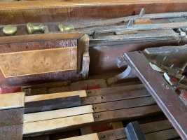 This handsome Broadwood is number 20015, indicating a date of 1815. It does need work, but appears to be structurally sound with remarkably little sign of any twist. As is so often the case, the pedal has been lost at some time in the past.