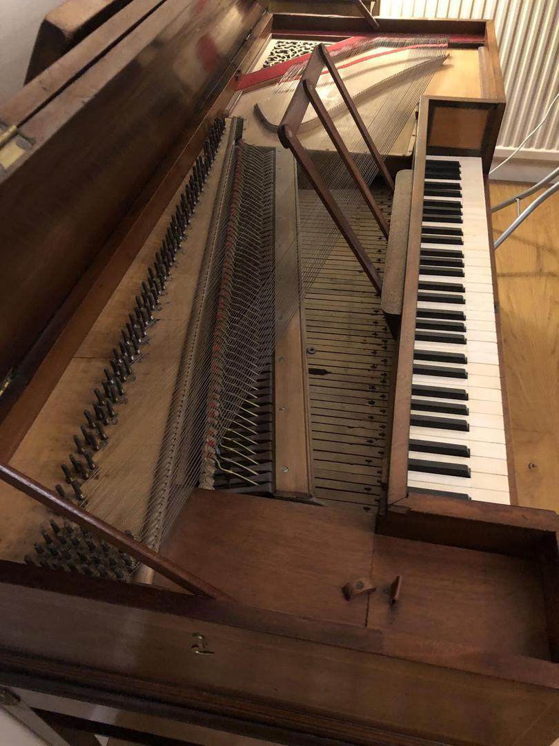 The stand is correct for the piano, but was actually taken from a piano by Longman & Broderip and tailored to fit.