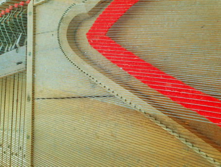 This image also shows the soundboard and bridge to be in good condition as far as we can see. The open joint due to shrinkage is very common; easily shimmed from above, and never seems to have any effect on the sound anyway,