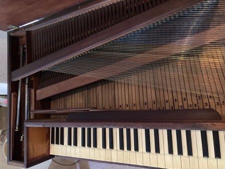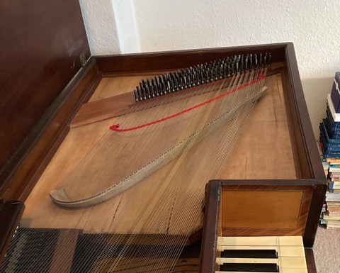 It has the expected three handstops for a divided damper-lift and buff stop. Following a recent restoration, the strings and dampers are in good condition. The piano has been recently serviced (2026) and is stated to be in full playing order.